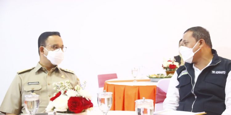 Bekasi – Gubernur DKI Jakarta Anis Baswedan berkunjung ke TPST Bantargebang, Senin 21 Februari 2022. Kedatangannya sekaligus penyerahan aset hasil karya anak bangsa PLTSA merah putih