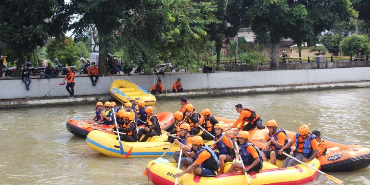 Bekasi – Dalam rangka menyambut HUT ke-25 Kota Bekasi, Badan Penanggulangan Bencana Daerah (BPBD) menggelar even Balap Perahu Dayung antar Organisasi Perangkat Daerah (OPD) se-Kota Bekasi di sungai Kalimalang.