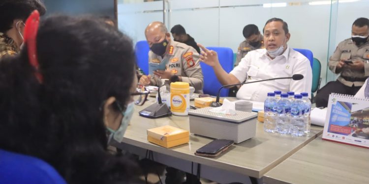 Bekasi – Pelaksana Tugas (Plt) Wali Kota Bekasi Tri Adhianto bersana unsur musyawarah pimpinan daerah (Muspida) melakukan rapat koordinasi dengan Pusat Data dan Informasi (Pusdatin) di Kementerian Kesehatan, Kuningan, Jakarta Selatan, Selasa (1/3/2022).