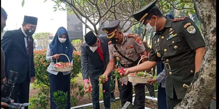 Bekasi – Jelang perayaan tahun perak hari jadi Kota Bekasi ke-25, Pemerintah Kota (Pemkot) Kota Bekasi dan DPRD Kota Bekasi melangsungkan tabur bunga untuk pahlawan Bekasi di Taman Makam Pahlawan Bulak Kapal Kota Bekasi.