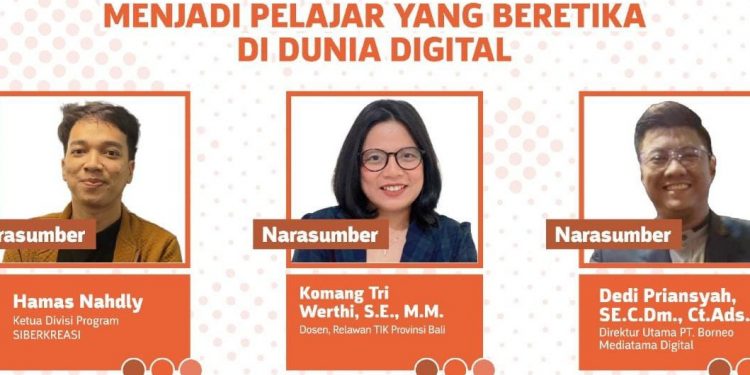 Demikian yang mengemuka dalam webinar bertema “Menjadi Pelajar yang Beretika di Dunia Digital”, awal pekan lalu, di Kalimantan, yang diselenggarakan Kementerian Komunikasi dan Informatika RI bersama Gerakan Nasional Literasi Digital (GNLD) Siberkreasi.