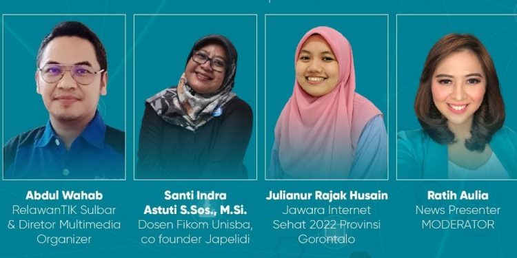 Narasumber webinar adalah Director Multimedia Organizer dan Relawan TIK Sulawesi Barat Abdul Wahab; Co Founder Japelidi dan Dosen Fisikom Unisba Santi Indra Astuti S.Sos M.Si; dan Jawara Internet Sehat 2022 Provinsi Gorontalo Julianur Rajak Husain.