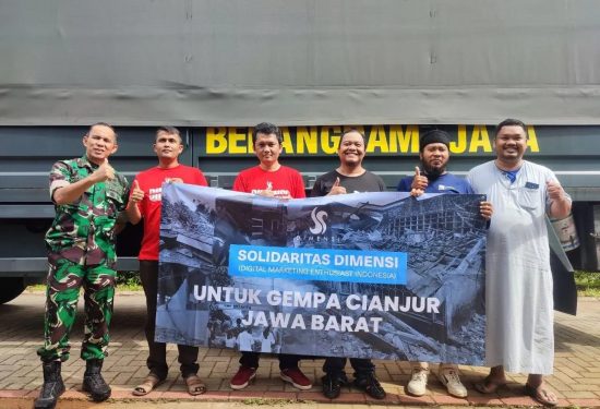 Cianjur— Komunitas forum digital marketing melalui Yayasan Dimensi Untuk Indonesia (YDUI), menyerahkan bantuan kepada warga korban terdampak gempa Cianjur, Jawa Barat. Bantuan berupa 520 paket sembako dan 100 lembar terpal atau setara Rp65.200.000 ini dilakukan di komplek Kodim 0608, Cianjur.