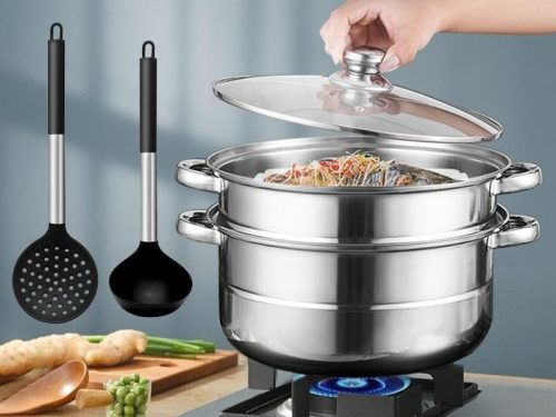 Terbuat dari lapisan stainless steel tebal, anti bocor, anti lengket, dan cocok untuk penggunaan jangka waktu yang lama. Dengan kapasitas panci besar dan dilengkapi dengan alas pengukus kualitas terbaik serta tutup panci transparan yang dilengkapi dengan lubang ventilasi. Kerennya lagi, panci ini bisa digunakan untuk semua jenis kompor, mulai dari kompor gas, kompor listrik, kompor induksi, dan kompor elektrotermal.
