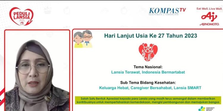 Pada sesi webinar kali ini turut hadir Plt. Direktur Kesehatan Usia Produktif & Lansia Kemenkes RI, yaitu dr Nida Rohmawati, MPH, yang menyampaikan perihal kebijakan, inisiatif, dan strategi yang dilakukan pemerintah dalam momen Hari Lansia Nasional 2023 dengan tema nasional ‘Lansia Terawat, Indonesia Bermartabat’.