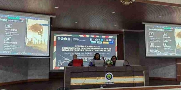 Seminar Nasional 2023 dengan tema “Jejak Lingkungan: Dari Sejarah untuk Melestarikan dan Mewartakan Keindahan Bumi Nenek Moyang” di Perpustakaan UM, Kota Malang, Selasa (26/9/23). Himpunan Mahasiswa Departemen (HMD) Sejarah Universitas Negeri Malang (UM) bekerja sama dengan netralnewsdotcom (NNC) menyelenggarakan Seminar Nasional 2023 dengan tema “Jejak Lingkungan: Dari Sejarah untuk Melestarikan dan Mewartakan Keindahan Bumi Nenek Moyang” di Perpustakaan UM, Kota Malang, Selasa (26/9/23).