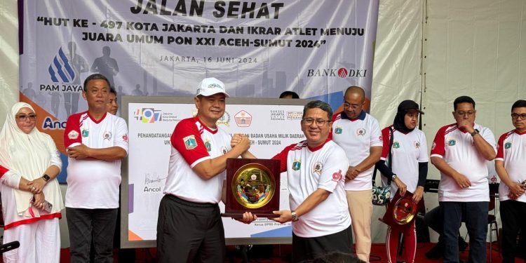 Jakarta – Komite Olahraga Nasional Indonesia (KONI) bersama Perusahaan Umum Daerah (Perumda) Pembangunan Sarana Jaya resmi menandatangani Nota Kesepahaman (MoU) tentang perekrutan atlet berprestasi peraih medali Emas PON XXI/2024 Aceh-Sumut.